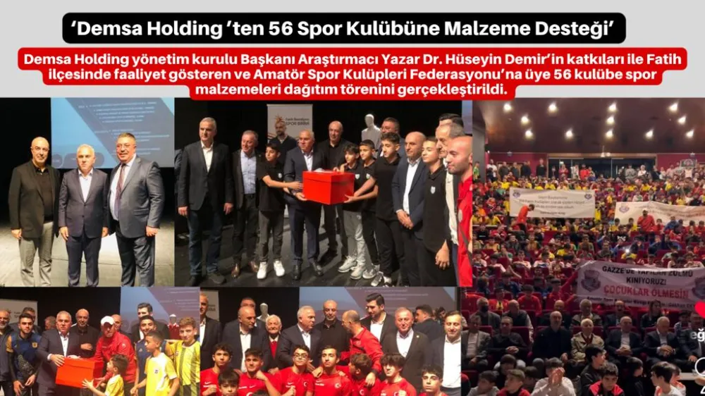 Demsa Holding yönetim kurulu Başkanı Araştırmacı Yazar Dr. Hüseyin Demir’in katkıları ile Fatih ilçesinde faaliyet gösteren ve Amatör Spor Kulüpleri Federasyonu’na üye 56 kulübe spor malzemeleri dağıtım törenini gerçekleştirildi.