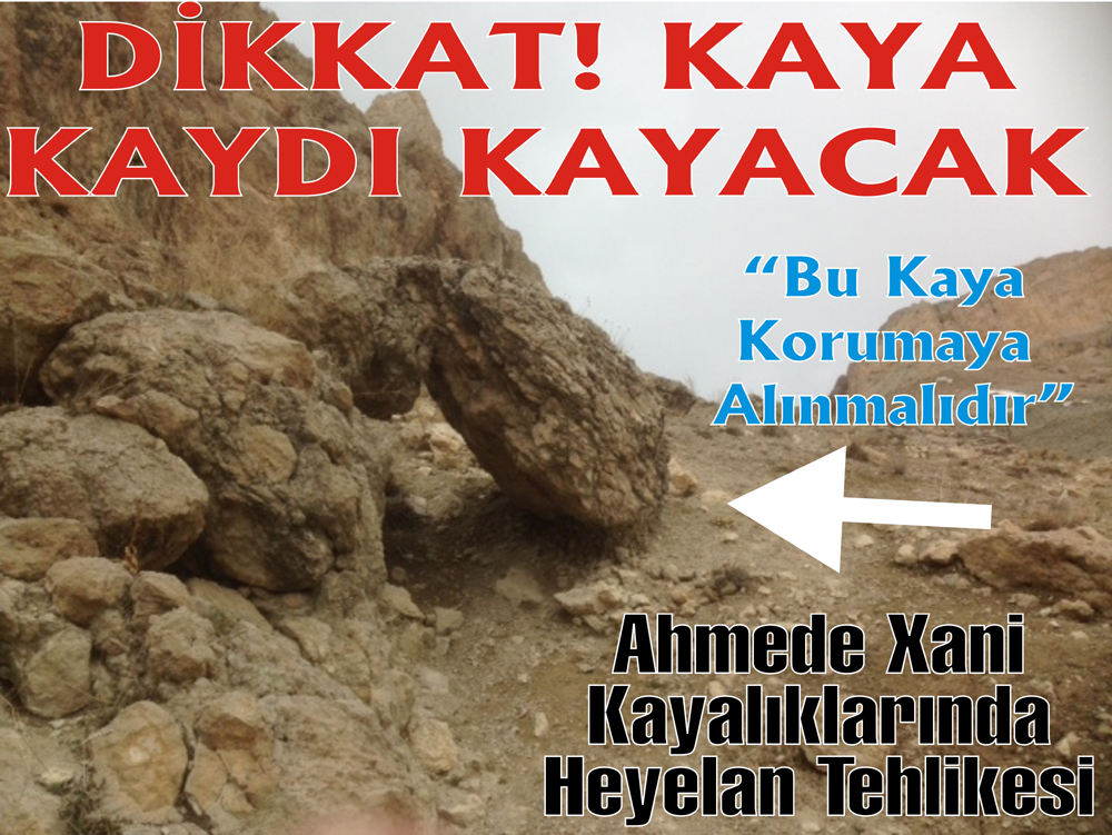 Ahmede Xani Türbesinin karşısındaki kayalıklarda ciddi bir kaya heyelanı tehlikesi bulunuyor. Altı oyulan büyük bir kaya parçasının kaymak üzere olduğu anlaşıldı.