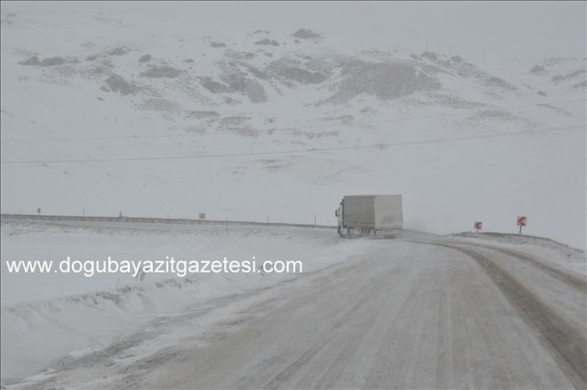 Doğubayazıt ile Van´ın Çaldıran ilçeleri arasındaki Tendürek Dağı Geçidi´nde etkili olan kar yağışı ve tipi sürücülere zor anlar yaşatıyor.