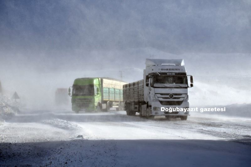 Doğubayazıt ile Van'ın Çaldıran ilçelerini birbirine bağlayan 2 bin 644 rakımlı Tendürek Geçidi'nde kar yağışı ve tipi etkili oldu.