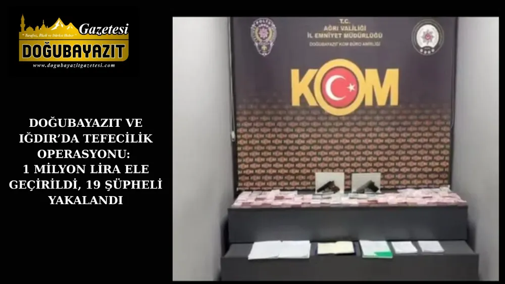 Ağrı Cumhuriyet Başsavcılığı koordinesinde Kaçakçılık ve Organize Suçlarla Mücadele Şube Müdürlüğü ekiplerince tefecilik suçuna yönelik yürütülen çalışmalar kapsamında Doğubayazıt'ta 6 ikamet, 3 işyeri ve Iğdır'da 1 ikamet olmak üzere toplam 10 adrese eş zamanlı operasyon düzenlendi.