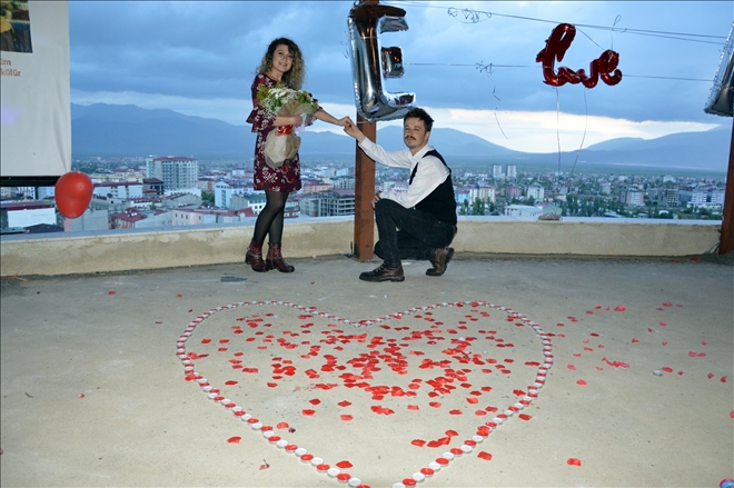 Doğubayazıt ilçesinde arkadaşlarının desteğiyle kız arkadaşına evlilik teklif eden öğretmen Recep Gündar, günün sonunda istediği cevabı aldı.