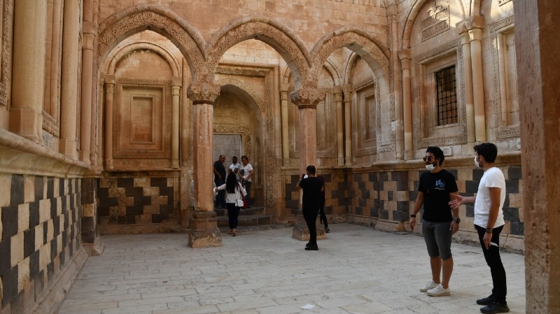 Bünyesindeki 116 oda, türbe, cami, surlar, iç ve dış avlular, divan ve harem salonları ile UNESCO Dünya Mirası Geçici Listesi'nde yer alan tarihi yapıya, yeni tip koronavirüs (Kovid-19) tedbirleri kapsamında tek tek ateşleri ölçüldükten sonra alınan misafirler, maske takıp sosyal mesafe kuralını gözeterek ziyaretlerini gerçekleştiriyor.