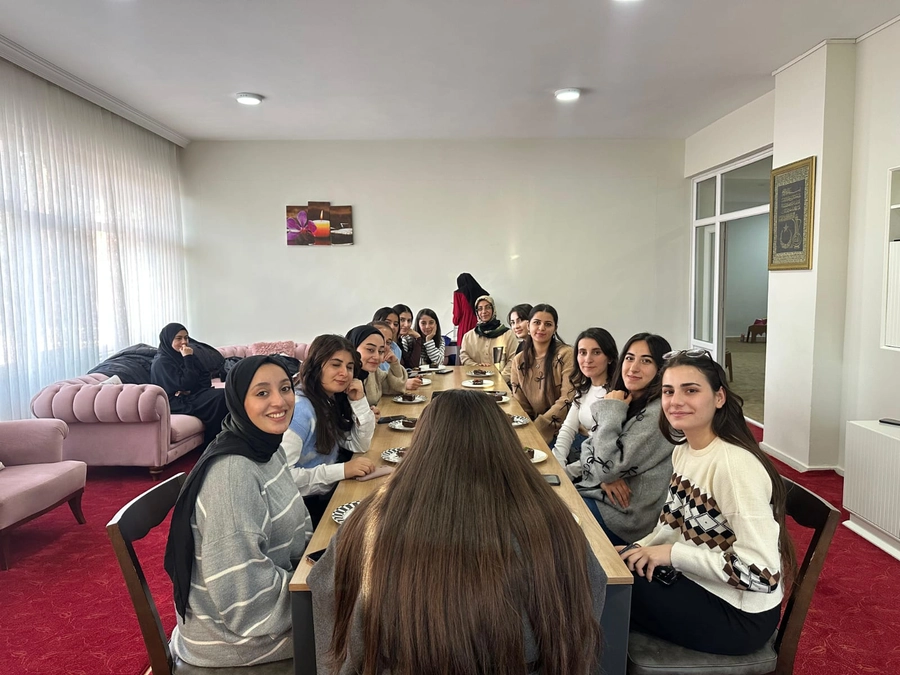 Fatma Gozal Kredi ve Yurtlar Kurumu (KYK) Kız Yurdu’nda kalan üniversite öğrencileri, İlçe Müftülüğü Gençlik Koordinatörü Dilan Özer riyasetinde 15 Temmuz Şehitleri Yatılı Hafızlık Kız Kur’an Kursu’nu ziyaret etti. Gerçekleştirilen ziyarette öğrenciler, Doğubayazıt İlçe Müftüsü İsa Demirkaynak ile bir araya geldi.