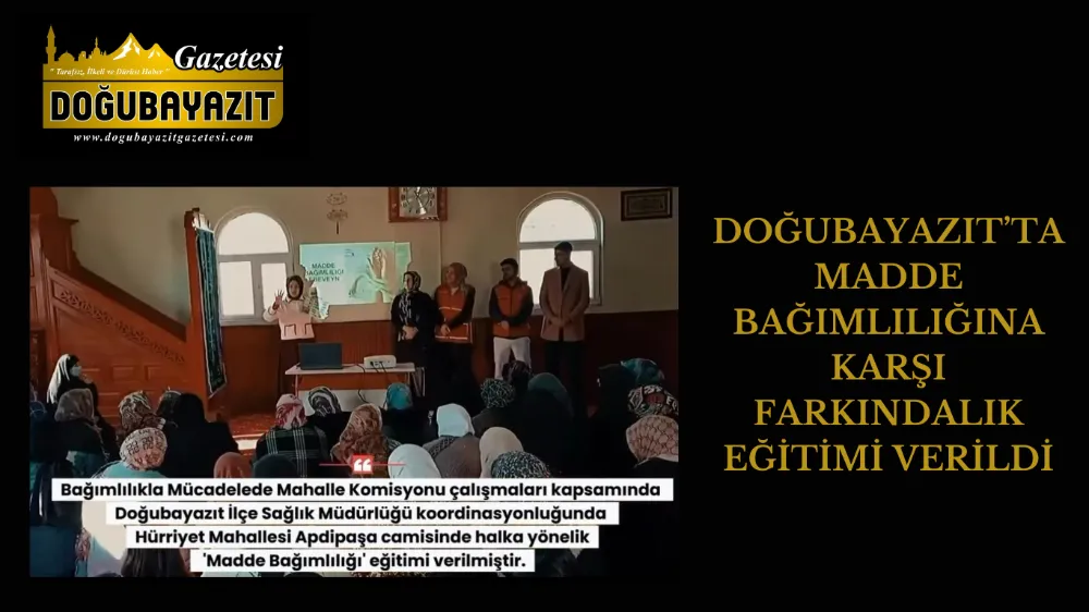 Doğubayazıt’ta bağımlılıkla mücadele kapsamında yürütülen çalışmalar aralıksız devam ediyor. Mahalle Komisyonu faaliyetleri çerçevesinde, Doğubayazıt İlçe Sağlık Müdürlüğü koordinasyonunda Hürriyet Mahallesi Abdipaşa Camii’nde vatandaşlara yönelik madde bağımlılığıyla mücadele eğitimi düzenlendi.