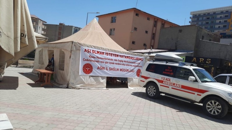 Doğubayazıt İlçe Sağlık Müdürlüğü koordinasyonunda Toplum Sağlığı Merkezi personelleri tarafından aşı çadırı kuruldu.
