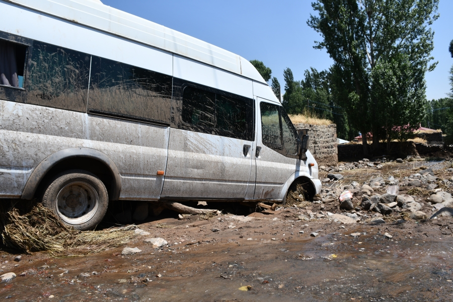 Selden en çok zarar gören ve bir kişinin hayatını kaybettiği Karaşey köyü Yolüstü mezrasında hasar tespit çalışması yapan ekiplere, Doğubayazıt Kaymakamlığı İlçe Özel İdare personeli de köy yollarını kaplayan çamur ve taşları temizleyerek destek verdi.