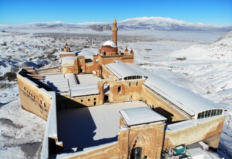 Doğubayazıt’ta bulunan İshak Paşa Sarayı, yılın her mevsimi ayrı güzelliğe bürünüyor.