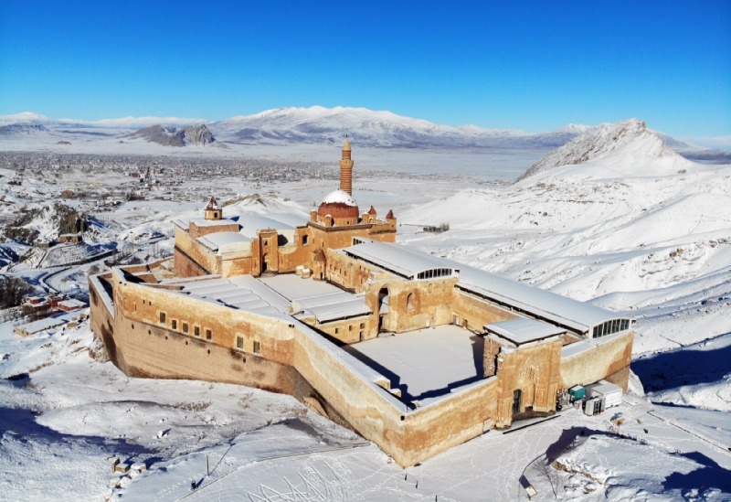 İlçenin güneyindeki 1900 rakımlı tepeye kurulu ve UNESCO Dünya Miras Geçici Listesi'nde de yer alan İshak Paşa Sarayı, kışın da ziyaretçilerin uğrak yeri oluyor.