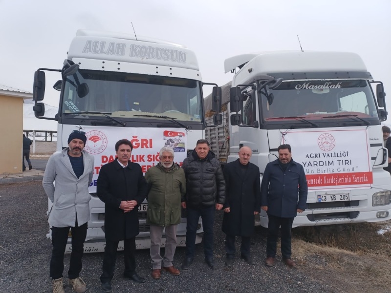 Doğubayazıt Kaymakamı Murat Ekinci, İlçe Tarım Müdürü M.Salih Akkuş ve Kızılay Başkanı Kemal Şahin ile birlikte yardımsever vatandaşların nezaretinde yapılan dualarla tırlar yola çıktı.