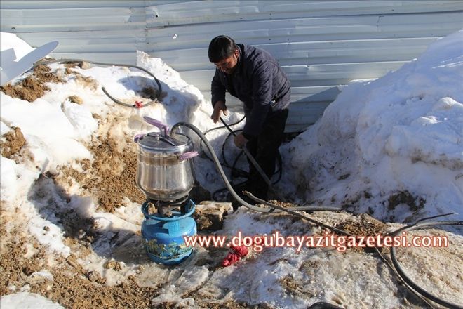 Günlerdir suları akmayan vatandaşlar, su borularındaki buzu çözebilmek için piknik tüpü ve düdüklü tencere kullandı. Düdüklü tencereden sağladıkları buharı boruya doğru tutan vatandaşlar, şebekedeki sorunu çözdü.