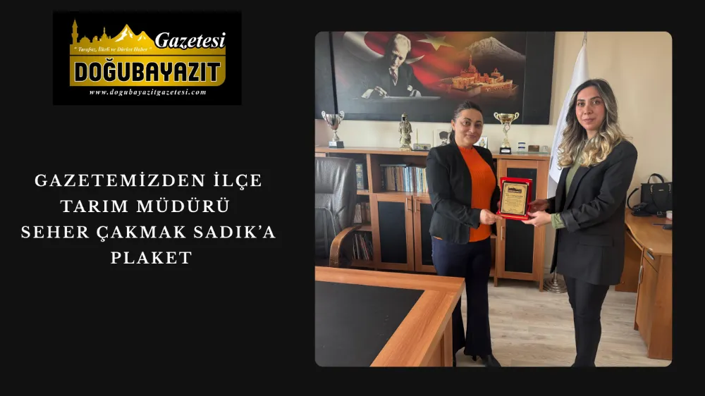 Doğubayazıt’ta tarım ve hayvancılık alanında yürüttüğü çalışmalarla dikkat çeken İlçe Tarım Müdürü Seher Çakmak Sadık’a, gazetemiz tarafından plaket takdim edildi. İlçede üreticilerin desteklenmesi, tarımsal projelerin yaygınlaştırılması ve hayvancılığın geliştirilmesine yönelik yürütülen çalışmaların takdir topladığı buluşmada, emek ve katkılar vurgulandı.