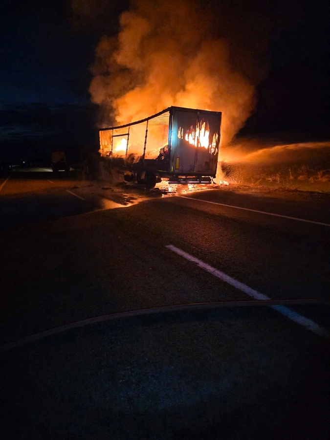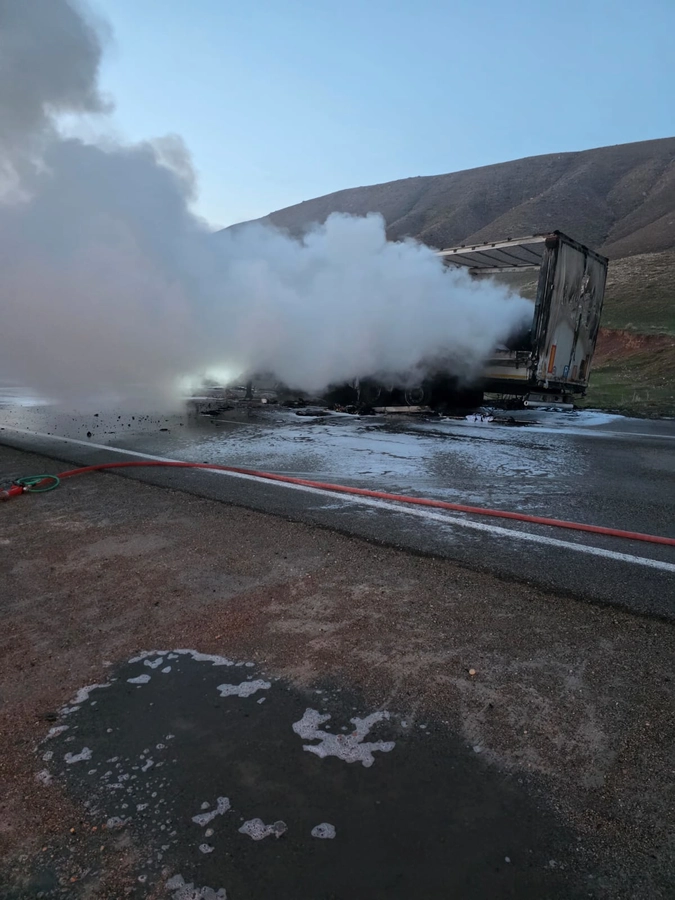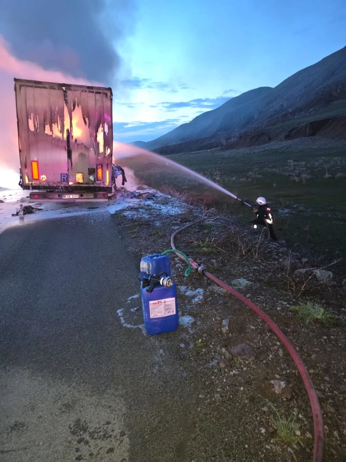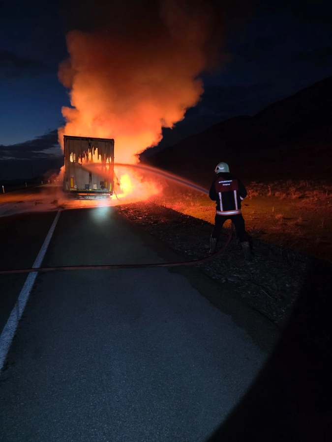 Ağrı’nın Doğubayazıt ilçesinde, Suluçem yol ayrımında gece saat 04.30 sıralarında tekstil malzemesi yüklü bir tır henüz bilinmeyen bir nedenle alev aldı. Çevredeki vatandaşların durumu fark etmesi üzerine yapılan ihbarla olay yerine ekipler sevk edildi.
