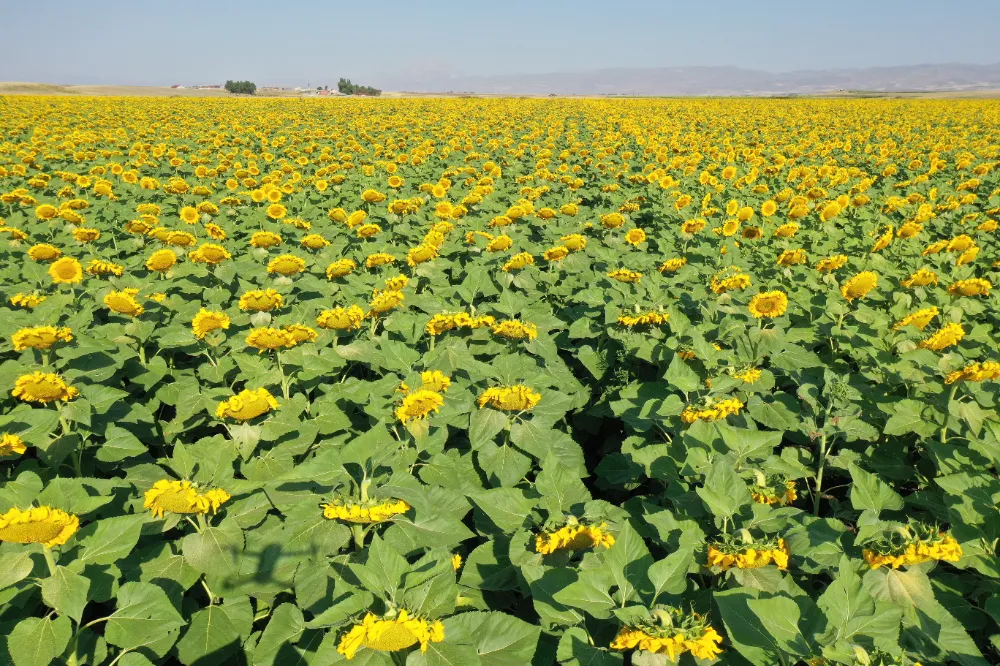 devlet desteğiyle üretimi yapılan ve hasada hazırlanan ayçiçeği tarlaları sarıya büründü.
