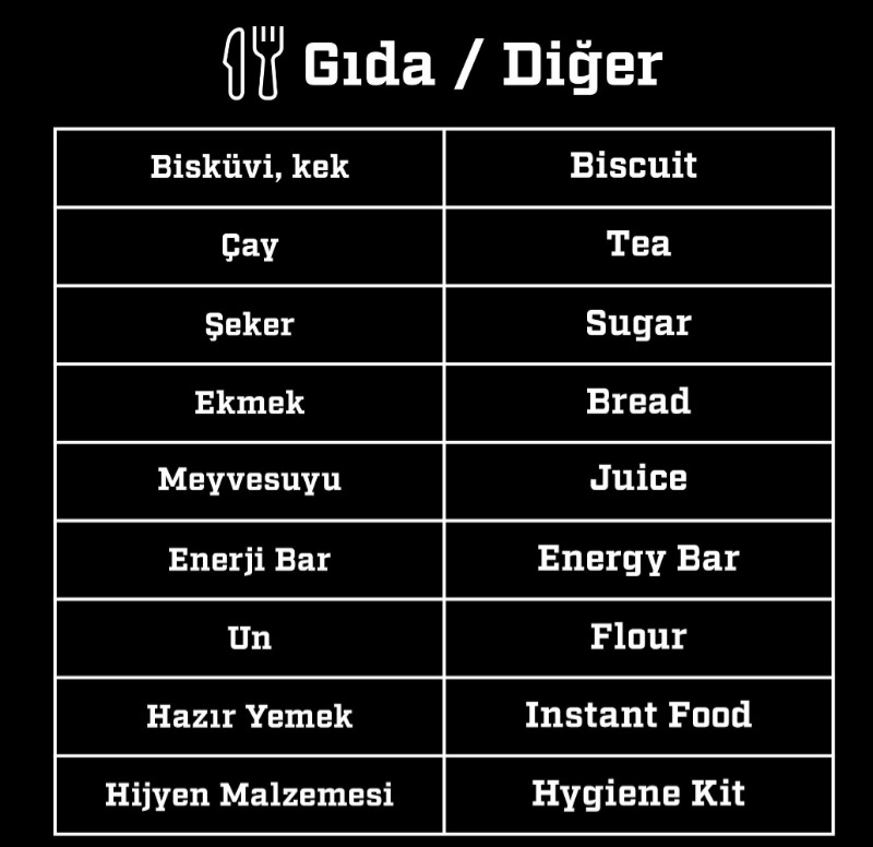 ACİL İHTİYAÇ YARDIMLARI ŞÖYLEDİR: