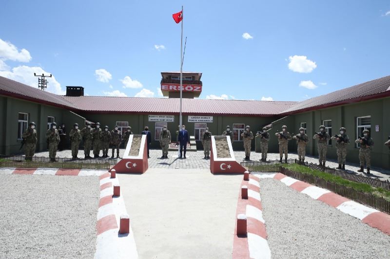 Karakol şeref defterini imzalayan Soylu, karakoldaki Mehmetçik'le öğle yemeği yedi ve sohbet etti.