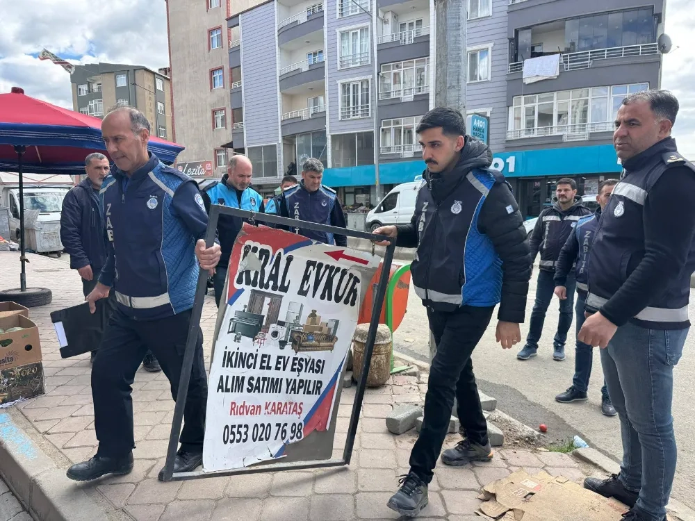 Iğdır Belediyesi Zabıta Müdürlüğü ekipleri, şehir genelinde yaya trafiğini rahatlatmak ve görüntü kirliliğinin önüne geçmek amacıyla başlattığı denetimlerini hafta sonu da dahil olmak üzere 7/24 esasıyla sürdürüyor.