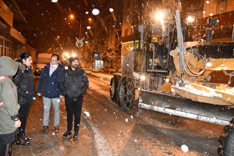 Modern kar küreme aracına dönüşen ve aynı zamanda tuzlama aracı olarakta kullanılan kamyonların, kar temizliği ve tuzlama çalışmalarına geceden devam eden belediye trafiğin yoğun olduğu bölgelere yoğunlaştı.