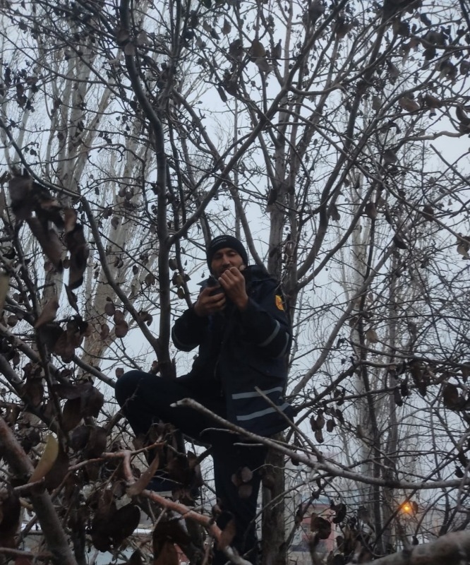 Koçkıran Mahallesinde ağaç dalına takılı kalan karga, İtfaiye ekiplerince daldan kurtarılıp doğaya salındı.