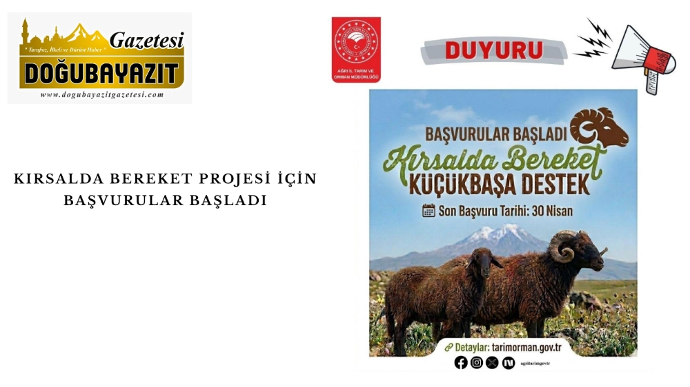 Doğubayazıt İlçe Tarım ve Orman Müdürlüğü tarafından yapılan duyuruya göre, kırsal kalkınmayı desteklemek amacıyla hayata geçirilen “Kırsalda Bereket Küçükbaşa Destek Projesi” için başvurular başladı.