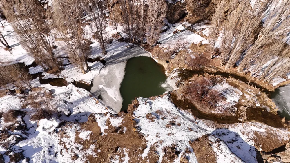 Sıcaklığın gece sıfırın altında 19 dereceye kadar düştüğü Van'ın Muradiye ilçesindeki şelale de soğuk havanın etkisiyle kısmen dondu. Muradiye Şelalesi'nin buz tutan bölümleriyle oluşturduğu manzara dron ile görüntülendi.