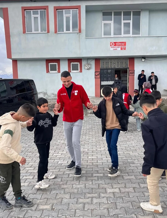 Türk Kızılay Doğubayazıt Şubesi, Karaca Köyü’nde gerçekleştirdiği anlamlı etkinlikle çocukların yüzünü güldürdü. Gönüllü ekiplerin katılımıyla düzenlenen programda, köydeki çocuklara hem moral verildi hem de unutulmaz bir gün yaşatıldı.