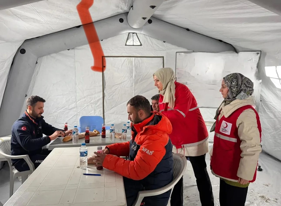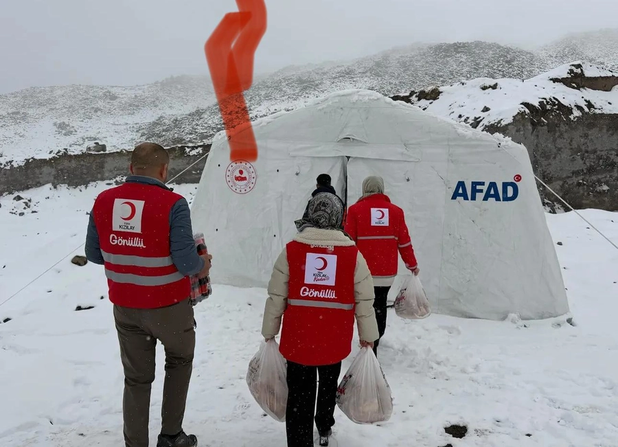 Kar ve soğuk hava koşullarına rağmen sahada aktif olarak görev yapan arama kurtarma ekiplerine yönelik gerçekleştirilen destek çalışması, bölgedeki dayanışma ruhunu bir kez daha gözler önüne serdi. Kızılay gönüllüleri, ekiplerin ihtiyaçlarını karşılamak amacıyla hazırlanan kumanyaları bizzat ulaştırarak görev başındaki personelin yanında oldu.