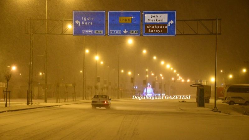 Kar kalınlığının 10 santimetreyi bulduğu ilçede, 7 kilometrelik tarihi İshak Paşa Sarayı yolunda sürücüler ilerlemekte zorlandı.
