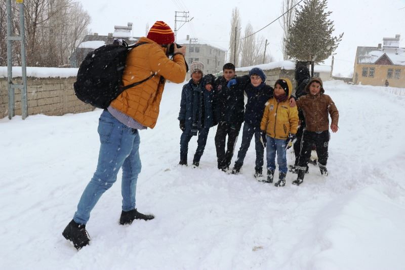 Kızaklarla kayan çocuklarla vakit geçirip fotoğraflarını çekerek bu anları ölümsüzleştiren Hıdır Dağbaşı, gittiği köylerde yağan kar altında ve soğuk havada hayvanlarını besleyen çiftçilerle bir araya geldi.