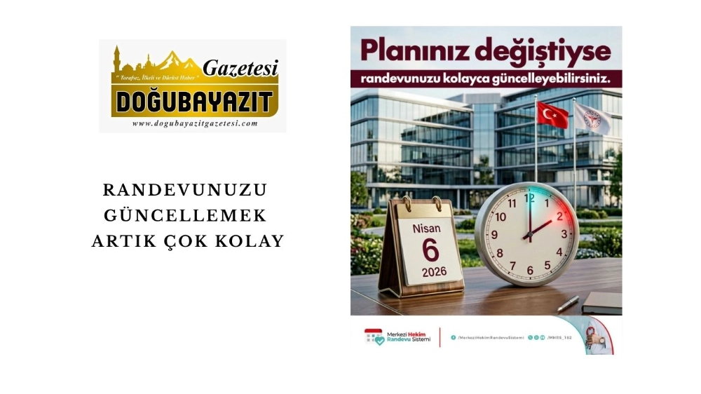 Ağrı İl Sağlık Müdürlüğü, vatandaşların sağlık hizmetlerine daha hızlı ve kolay erişebilmesi amacıyla Merkezi Hekim Randevu Sistemi (MHRS) üzerinden randevu güncelleme kolaylığını hatırlattı.
