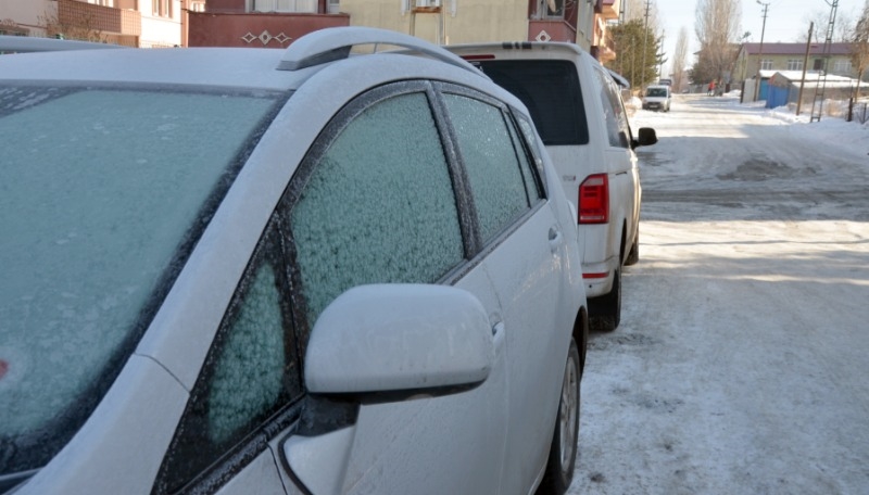Kentte vatandaşlar soğuğa karşı önlem almak için araçlarının üstünü battaniye ve halılarla örttü.