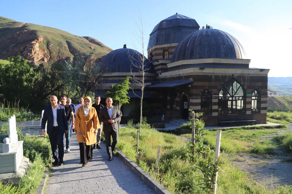 Genel Başkan Yılmaz, Kaymakam Murat Ekinci, Kızılay Şube Başkanı Kemal Şahin ve beraberindekilerle İshak Paşa Sarayı ile İslam alimi Ahmed-i Hani'nin türbesine ziyarette bulunup bilgiler aldı.