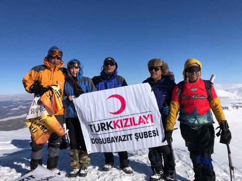 Şehitler anısına sporcular tarafından saygı duruşu İstiklal marşı ve Fatiha okunarak zirve hatıra defterine tırmanış hatırası yazıldı. Zirvede Doğubayazıt Kuzılay şube üyesi ve dağ spor rehberi Cuma Saltik ile Doğubayazıt ve Iğdırlı sporcular tarafından Türk Kuzılayı Doğubayazıt şubesi pankartı açıldı Ayrıca Allahu Ekber şehitliği de ziyaret edilerek orada da Türk Kızılayı Doğubayazıt şubesi pankartı açıldı.Zirveye katılan tüm sporculara Türk Kızılay Doğubayazıt şubesi Başkanı Kemal Şahin adına yönetim kurulu üyesi Cuma Saltık teşekkürlerini belirtti .