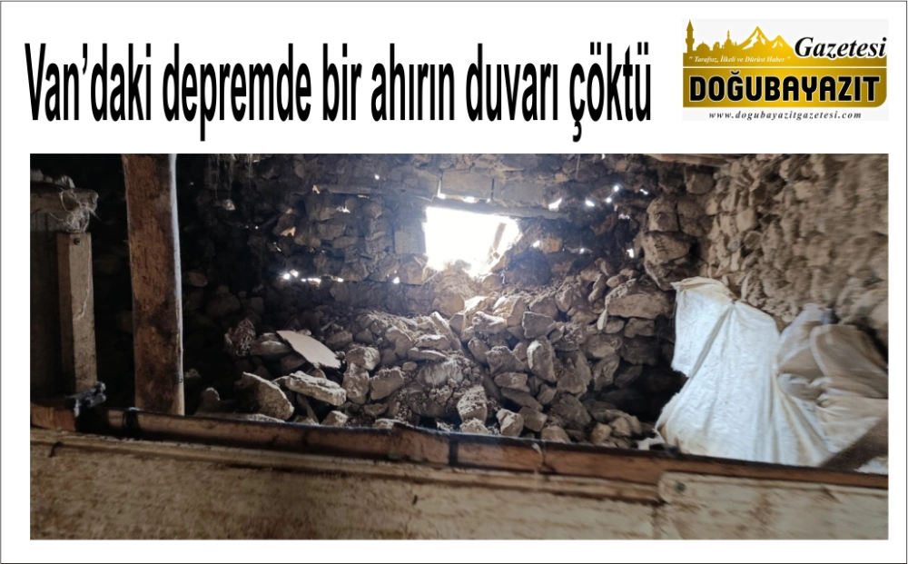 Van’ın Tuşba ilçesinde 5.2 büyüklüğündeki depremde bir ahırın duvarı çöktü.