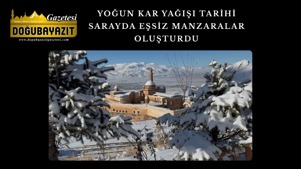 Kar yağışının ardından sarayın avlusu, taş duvarları ve çevresindeki tarihi dokular tamamen karla kaplanırken, oluşan manzara görenleri hayran bıraktı. Doğubayazıt’ın simgelerinden biri olan İshak Paşa Sarayı, karın etkisiyle kartpostallık görüntüler sunarak ziyaretçilerin ve fotoğraf tutkunlarının ilgisini çekti.(İHA)