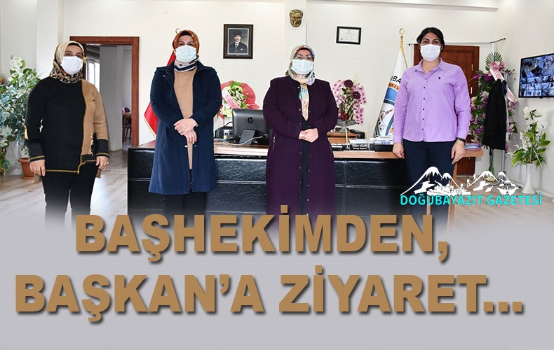 Dr. Yaşar Eryılmaz Doğubayazıt Devlet Hastanesi Başhekimi Enfeksiyon Hastalıkları ve Klinik Mikrobiyoloji Uzmanı Dr. Demet Ökke ile İdari ve Mali İşler Müdürü Nazan Altuntaş Göktürk Başkan Yıldız Acar’ı makamında ziyaret ederek görüş alışverişinde bulundular.